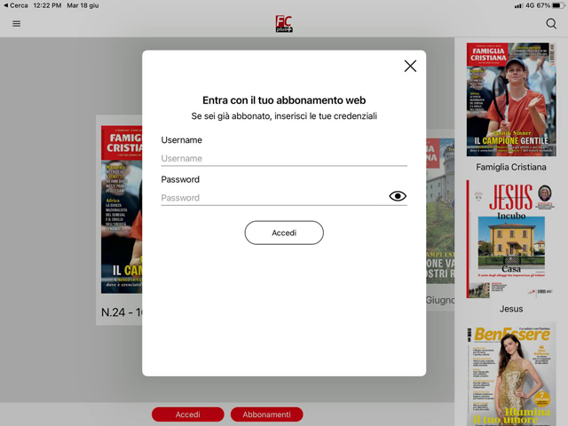 Inserisci le stesse credenziali Apple (o Google) con le quali ha acquistato il medesimo numero della rivista sul dispositivo